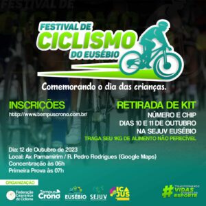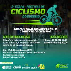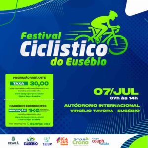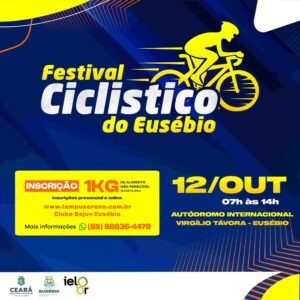 O festival de Ciclismo do Eusébio 2025 acontecerá no Autódromo Internacional Virgílio Távora. A 1ª largada será as 7h:00 da manhã do dia 12/10/2025. Diversas categorias para disputar! REGULAMENTO FESTIVAL DE CICLISMO DO EUSÉBIO 2025 Resultado Festival Ciclístico do Eusébio