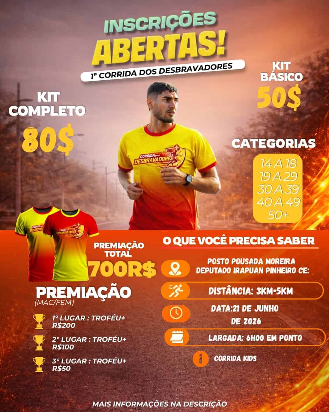 A 1ª Corrida dos Desbravadores tem como objetivo promover saúde, esporte e integração entre atletas iniciantes, experientes e toda comunidade.