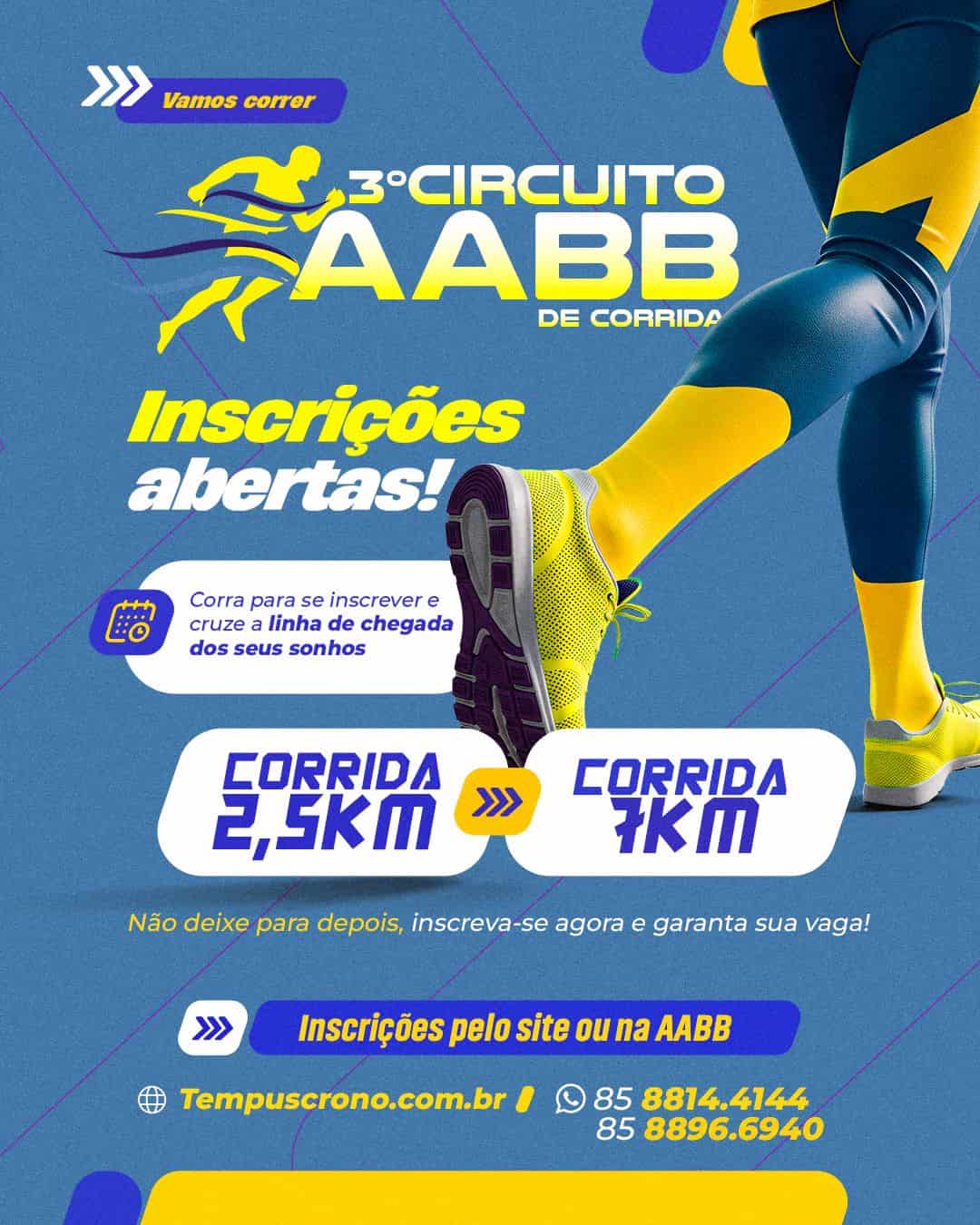 O Circuito AABB de Corridas, Etapa Maranguape, na sua 3ª edição, será realizada no dia 05/10/2025, domingo, no município de Maranguape, com largada e chegada na Associação Atlética Banco do Brasil de Maranguape-CE, localizada na Rua João Campos Paiva, s/n, com a participação de pessoas de ambos os sexos devidamente inscritas no evento.