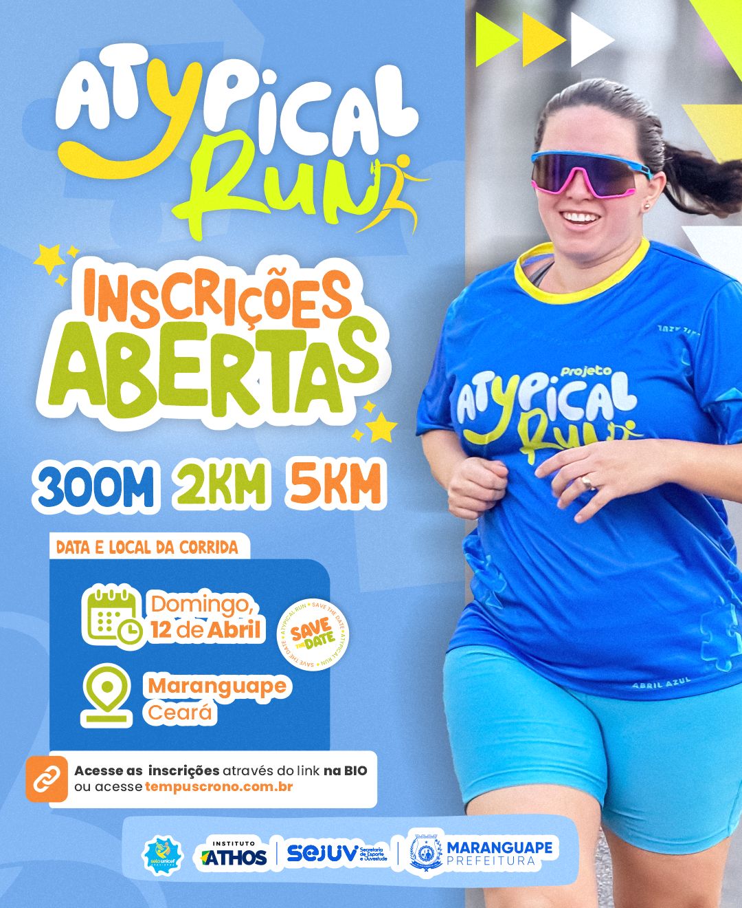 – 300M (infantil), 2km corrida e/ou caminhada, 5km