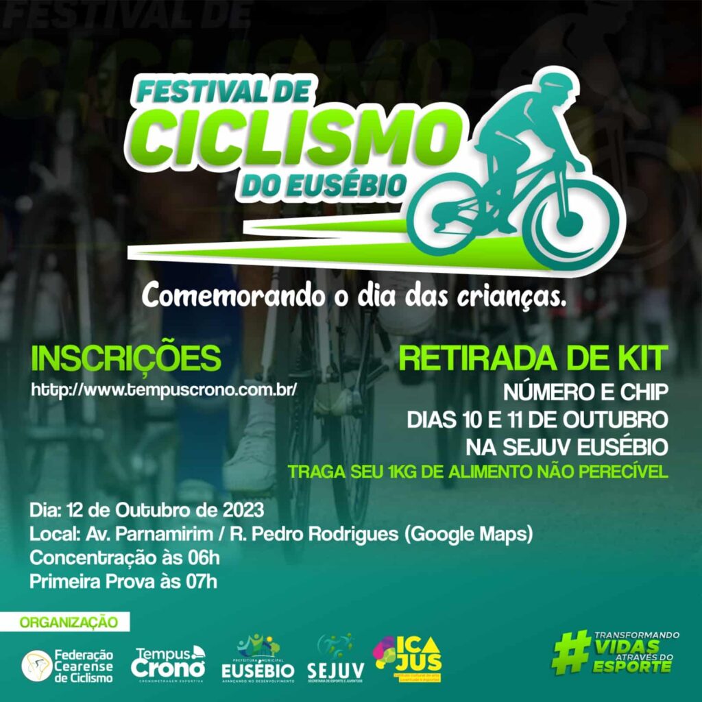 FESTIVAL DE CICLISMO DO EUSÉBIO ETAPA FESTIVA DE CICLISMO Com o objetivo de desenvolver e difundir o ciclismo no Município de Eusébio, bem como agregar adeptos do ciclismo nas competições, com o apoio e iniciativa da PREFEITURA MUNICIPAL DE EUSÉBIO, juntamente com a Secretaria de Esporte e Juventude – SEJUV e Instituto Cultural de Arte […]