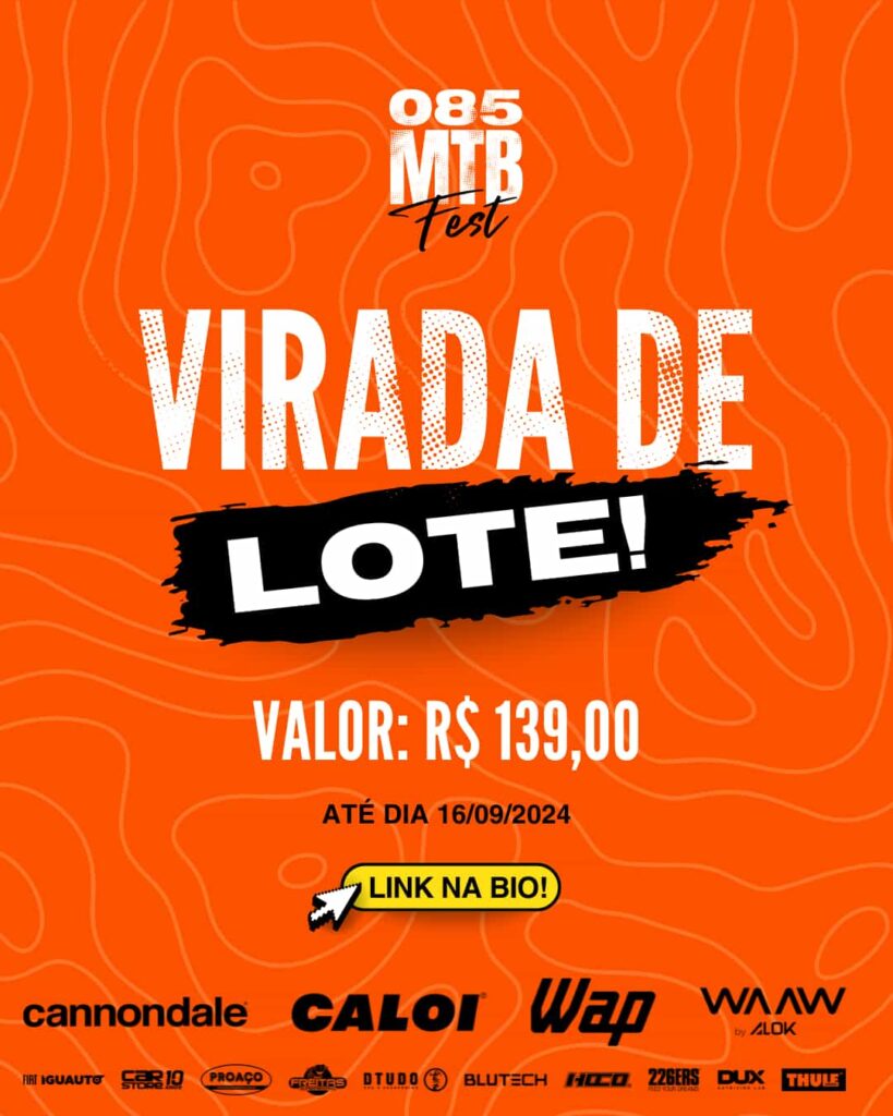 085 MTB FEST 2024 é uma competição de mountain bike estilo XCM a ser realizada na cidade do EUSEBIO no dia 22 de setembro de 2024 com início às 6:00h no POLO DE LAZER IVENS DIAS BRANCO. REGULAMENTO GERAL 085 MTB FEST